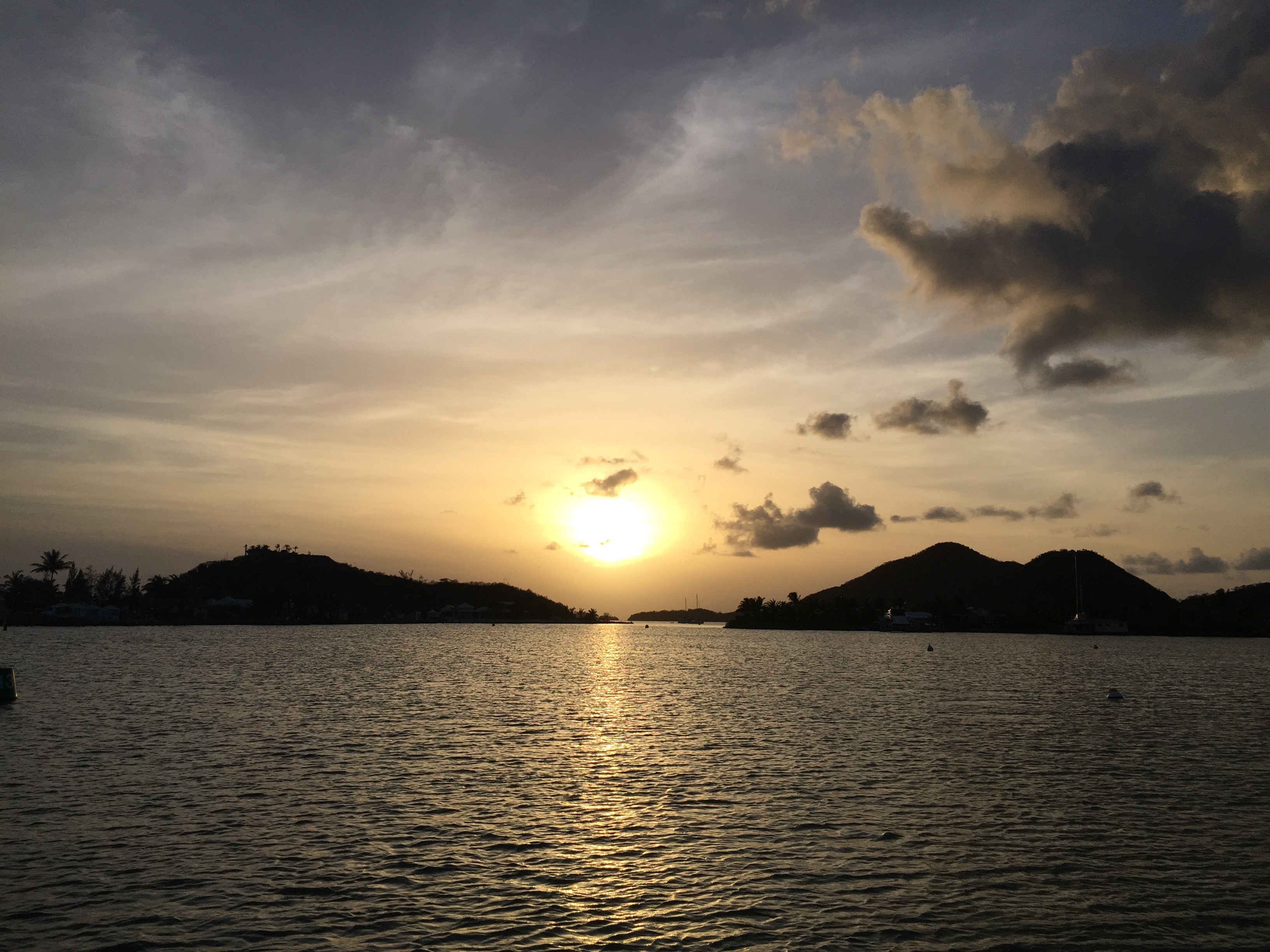 We left St. Barts about 5 pm and motor sailed about 15 hours to Jolly Harbour, Antigua. The sail was a bit bumpy as we had to go more into the wind and waves than we would have liked. But the crossing was safely completed and entering Jolly Harbour was like arriving in a post card.
