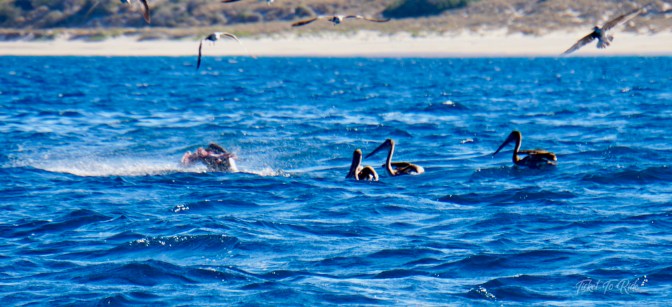 While anchored in Los Frailes we noticed the pelicans gathering in one spot and figured there must be a school of fish and it was meal time. I grabbed my camera hoping to catch the action.
