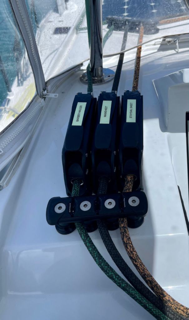 For the unfamiliar, lines connected to our sails run through a clutch which helps control the movement of the lines and therefore the shape of our sails. If the clutch is locked down, the line will not move in or out of the clutch, thus keeping a line immobile so the sail will hold a certain shape. Pretty sensible.