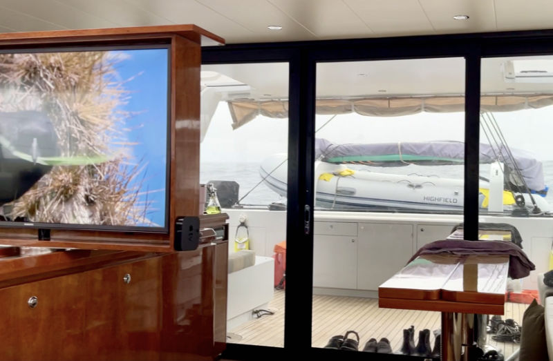This passage was our first long term experience of flying wing on wing head sails and it was an interesting and positive experience for us. We flew our reacher to leeward and our genoa to windward at wind angles deeper than 160. This configuration was comfortable and we could “reef” by rolling in the windward sail. We used this sail combination for 5 or 6 days and felt TTR was quick and comfortable.