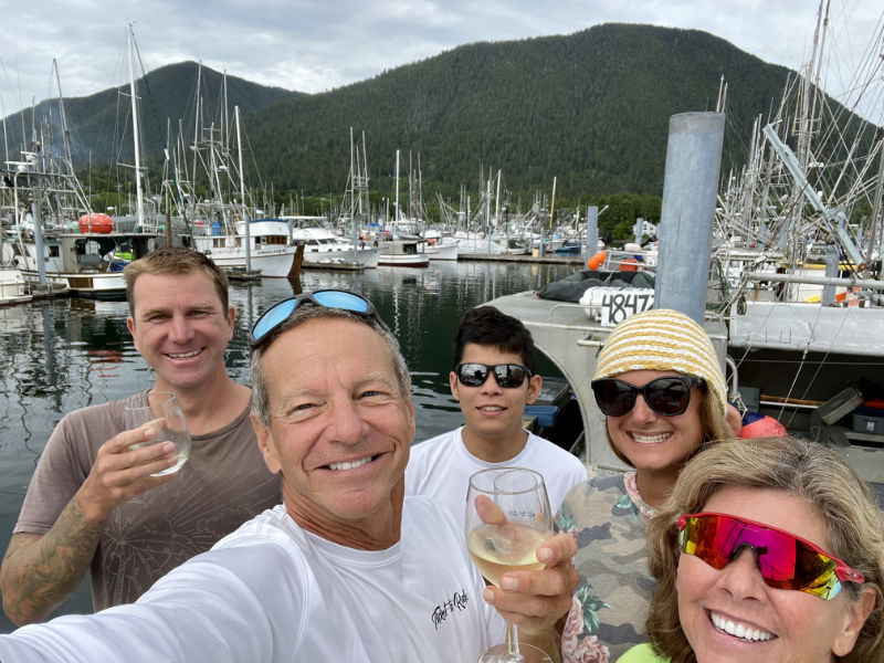 Originally we planned to sail directly to Glacier Bay, but we allowed the wind to direct our path and that resulted in landing at Sitka, AK. We managed to snag the last open marina spot in Thomsen Marina and as soon as we tied up our freshly cleaned boat, we popped the cork on a bottle of Prosecco to celebrate a successful, safe, comfortable and fast passage.