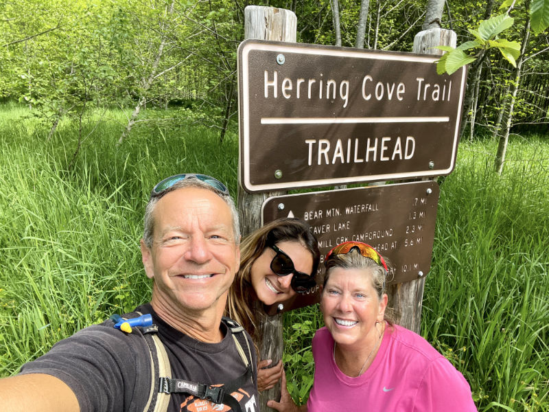 The Herring Cove Trail is so well made it is almost beyond belief. Sometimes the surface is one stepping stone to another, or it meanders through moss covered greenery, or across bridges made from one huge tree trunk with planks on top.