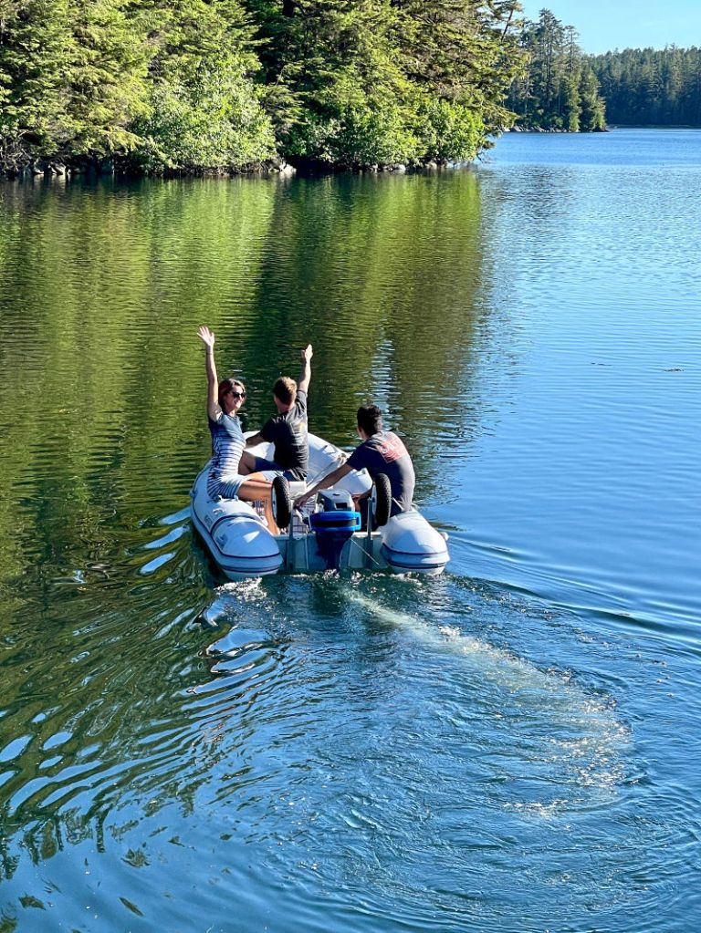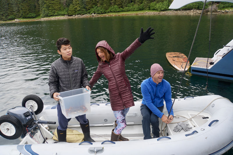Our first stop was Magoun Bay, a quick 28nm from Sitka. As soon as we were anchored, Erik, Tommy and Amelia made quick work of lowering the dinghy and finding a perfect spot to place the crab trap we had purchased in Sitka. We heard that catching crab is pretty easy in Alaska and we wanted to get our first taste of Dungeness crab! Sadly, no crabs climbed into our trap this time.