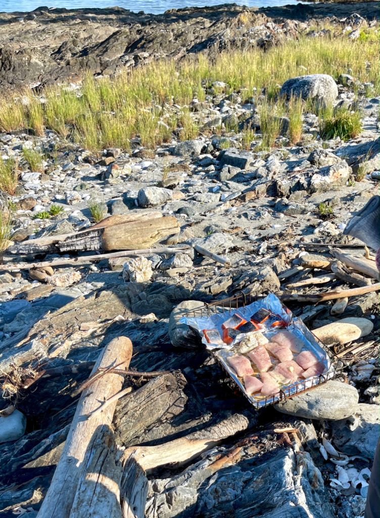 Following a magical tramp through the woods to reach their cabin, we took dinghies to a spit nearby and had a beach BBQ dinner of fresh halibut, salmon and crab! Welcome to Alaska, Hunter, where the sea provides an amazing bounty!