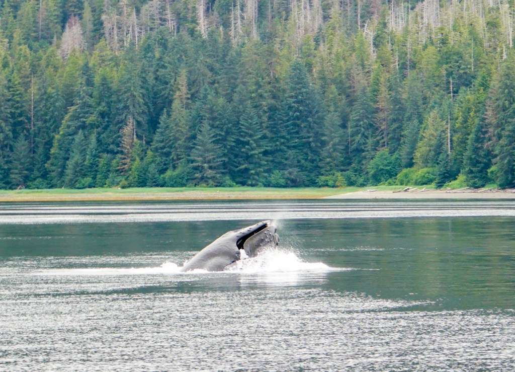 We left Sitka early to conquer a long 78 nm passage to Killinoo Harbor, but the day was filled with pretty scenery and plenty of time to catch up with Hunter as we motored. We had two surprises as we covered ground. The first was an opportunity to actually SAIL for a bit as we crossed the Chatham Strait. Although we only raised our head sail, it felt great to see TTR under wind power again for a little bit.
