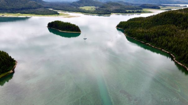 Approaching Elfin Cove in Day Tripper after anchoring TTR.