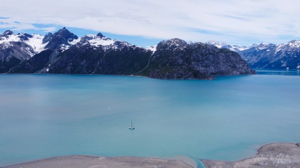 I stayed on TTR while Kevin, Katie, Amelia, Erik and Frank took the dinghy to shore to see the glacier. Frank flew the drone and captured some great photos which help show the immensity of Lamplugh. While visiting the glacier, we saw the glacier calf some big pieces of ice.