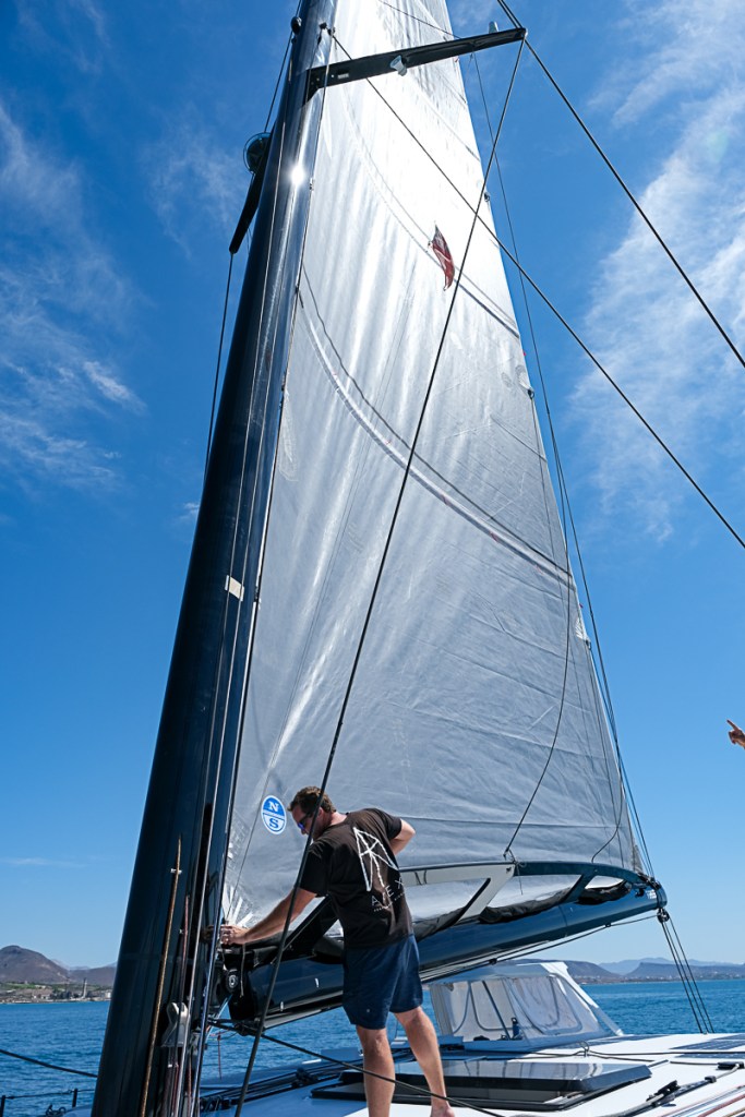 Gio of ApexRigging, flew into La Paz to help us dial in our new main sail. Gio was on board for several days working with us to set up the mainsail. We sailed a few times to make sure the main and reef points were in order. Gio and Frank reviewed our rigging, lines, sheets and halyards to make sure everything on TTR is solid so that we are in great shape for our sail to French Polynesia.
