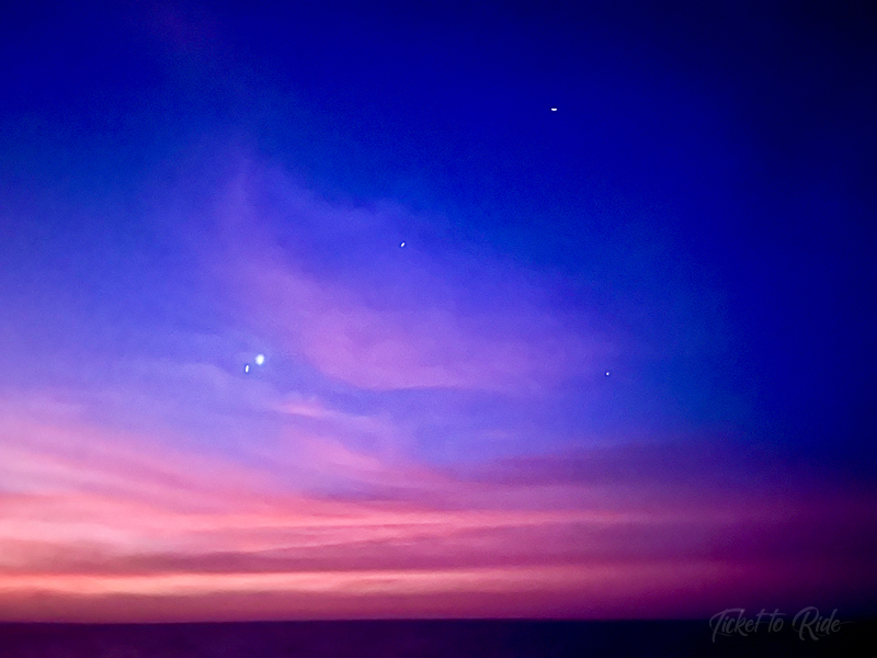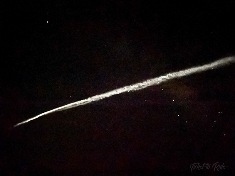 Erik received the award for strangest event during this passage. One night while on watch, he saw a huge object fly across the sky. He still can’t figure out if it was a meteor, a UFO, a comet or something else. Of course we couldn’t access the news to see if anything was reported but Erik did manage to snap this photo which he says doesn’t begin to do the event justice.