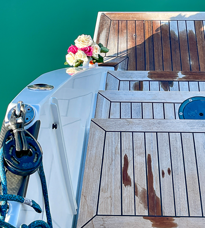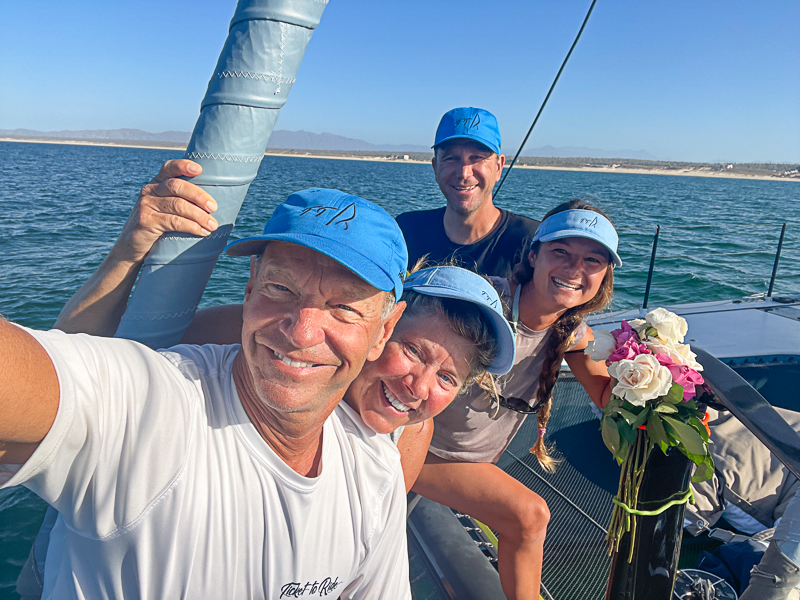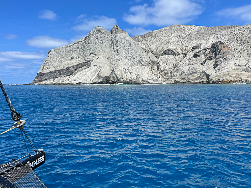 However, we broke up our consumption by making a stop at the Revillegedo Island of San Benedicto after leaving from La Ventana, MX. With provisions topped off in La Paz, we took a few minutes to festoon TTR with roses at the stern steps and bow. This Hawaiian tradition for a safe journey calls for Ti leaves, but since those weren’t available, we used the powerful rose instead.