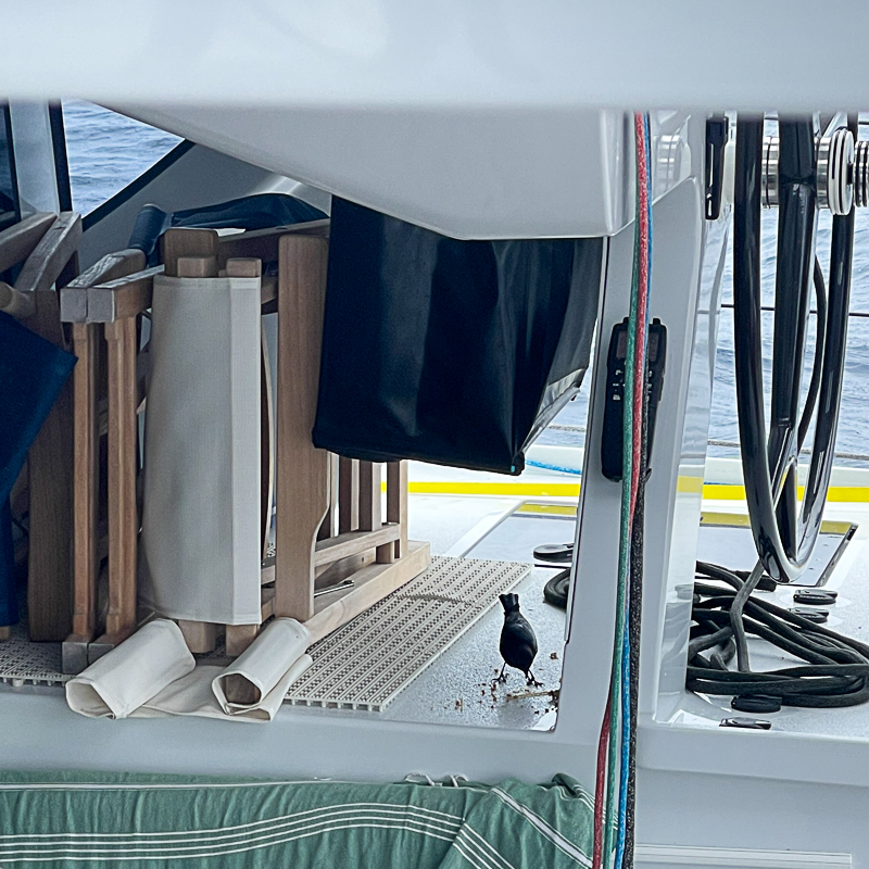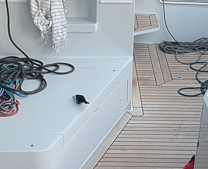Until we didn’t hear any chirps all morning. On day seven, Lenny did not return. We were hoping he was just extra tired after a busy night of sail changes, but alas, Lenny never returned. We kept Lenny’s spot stocked with his favorite food for a day or two, just hoping he would surprise us and reappear. We really hope Lenny found a different boat where he is happily ensconced and being well fed. I don’t like to think of our little feathered friend fatigued and lost at sea.