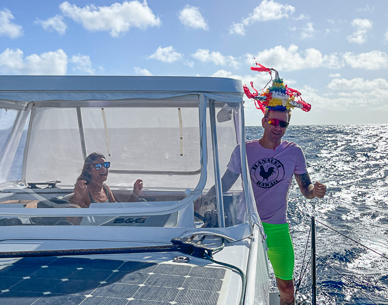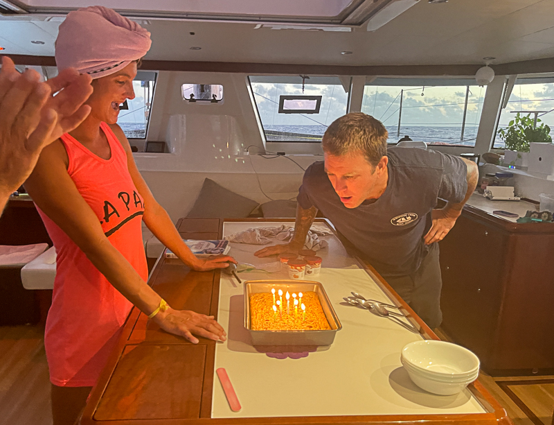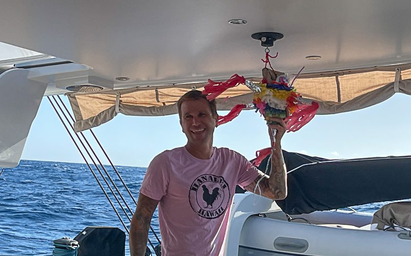 Ironically, several times during the passage, Erik had bemoaned not buying a piñata before leaving Mexico. Unbeknownst to him, Amelia had squirreled one away and it was the first step in Erik’s birthday celebration and gift hunt!