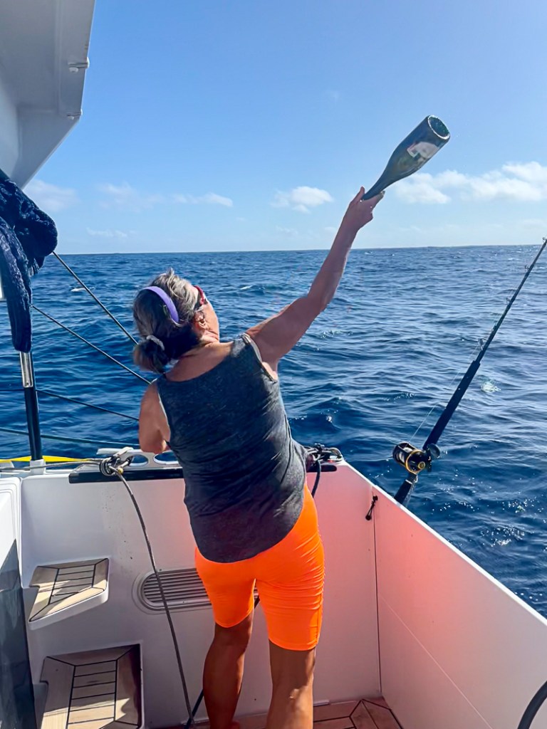 We toasted with Prosecco, shared our bubbles with Neptune, turned up the dance music and proceeded to celebrate and cavort on the back deck of TTR.