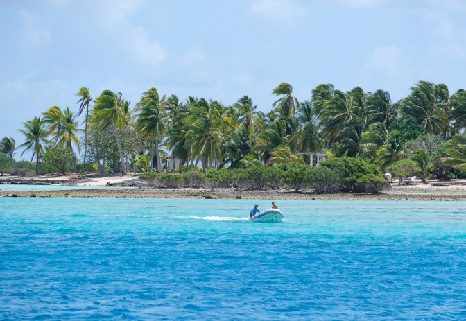 The wind had been howling for days so we quickly upped anchor and moved to an anchorage on the southeast side of Makemo. The anchor was barely set before a kite was inflated and Hunter took his first wakeboard set in French Polynesia!