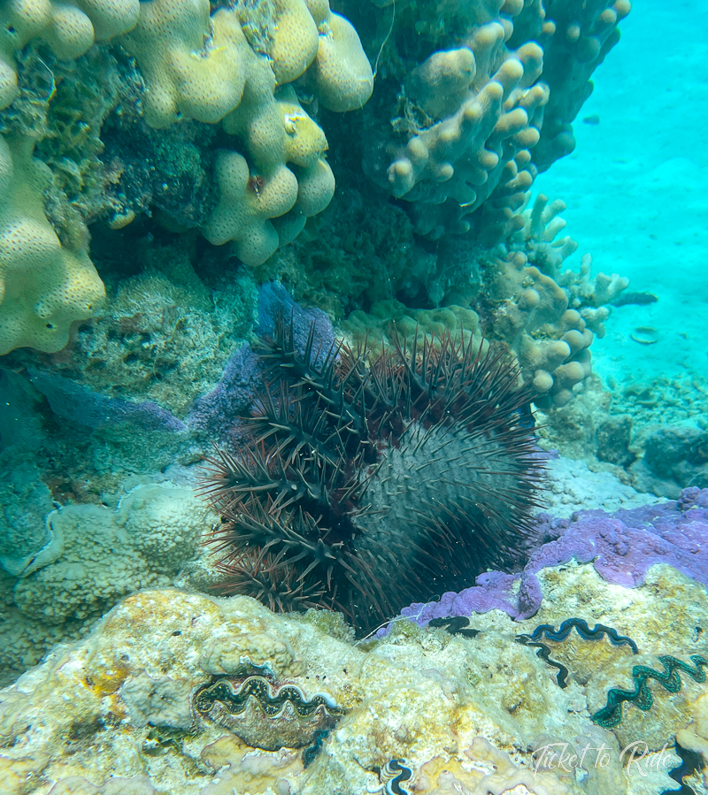 Fortunately the weather allowed us to swim to shore and explore the coral heads that litter the shoreline in front of where we anchored. Sadly we didn’t find any octopuses but Hunter was introduced to some stunning coral, a variety of fish and his first black tip reef shark.