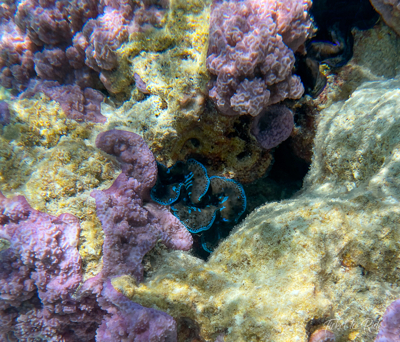 The morning of my birthday we were anchored in the northeast corner of Makemo which is referred to as The Blue Lagoon. However, there is so much purple coral that on TTR we call it Purple Paradise.  Frank and Hunter spoiled me by going on a two hour snorkel; one of my favorite ways to spent time in the water.