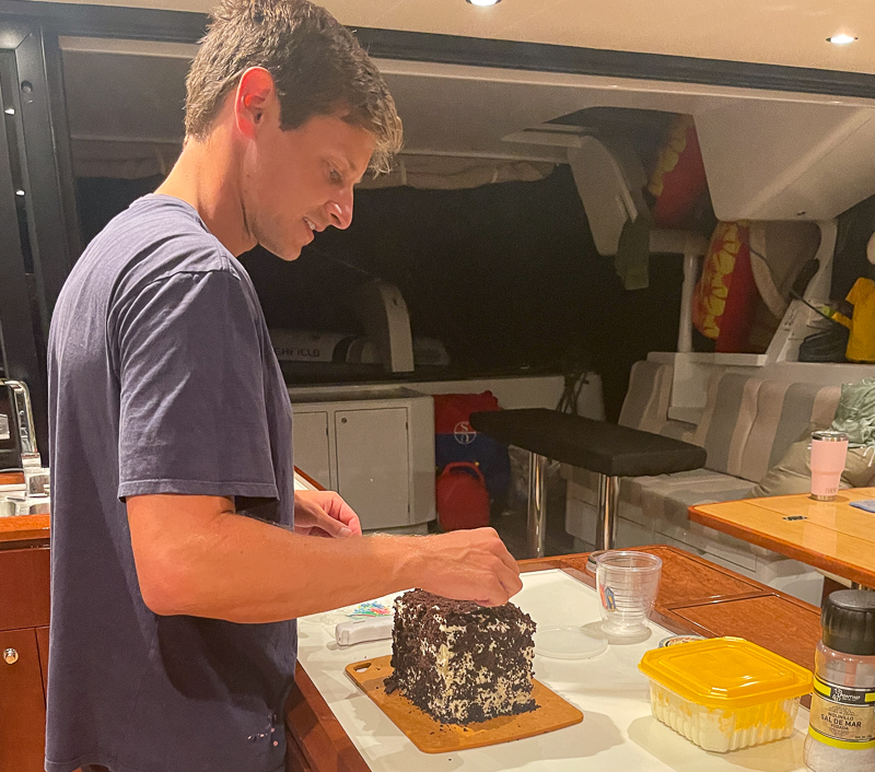 Just minutes after boarding Ticket to Ride, Hunter had shed his long pants, donned a swim suit and dived into the water. After so many hours of travel, the indigo water was too inviting not to immediately jump in!