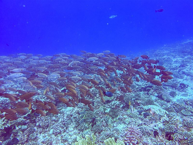 Way back in the US Virgin Islands, our kids earned scuba certifications so we could all dive together.  So far neither Hunter nor Clayton has embraced diving and it had been several years since Hunter had dived. We were excited to have him to join us and see the abundant life here in the Tuamotus. Drift dives sound intimidating and with so little experience, Hunter was a little apprehensive at first, but he settled in quickly and was rewarded with some gorgeous sea life.