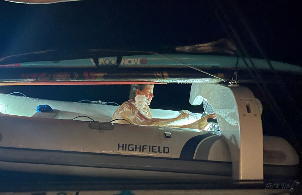 • Remove the seat in the dinghy so I can stretch out completely
