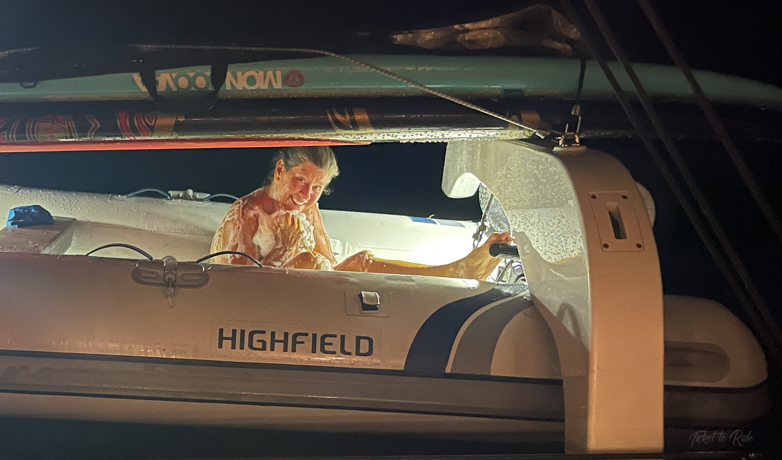However, there is room for improvement and the next time I have a dinghy bath, I will make sure we have complete privacy so I can: