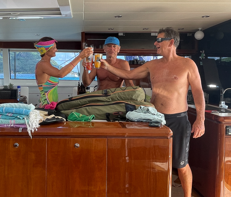 Kevin’s flight arrived around 11 one evening and Frank, Amelia and I recruited a couple of friends to join us at the dinghy dock to welcome him…. with water guns and bubble guns! Needless to say, Kevin was a bit surprised by his drenching of a welcome, but it kicked off his visit in a unique way.