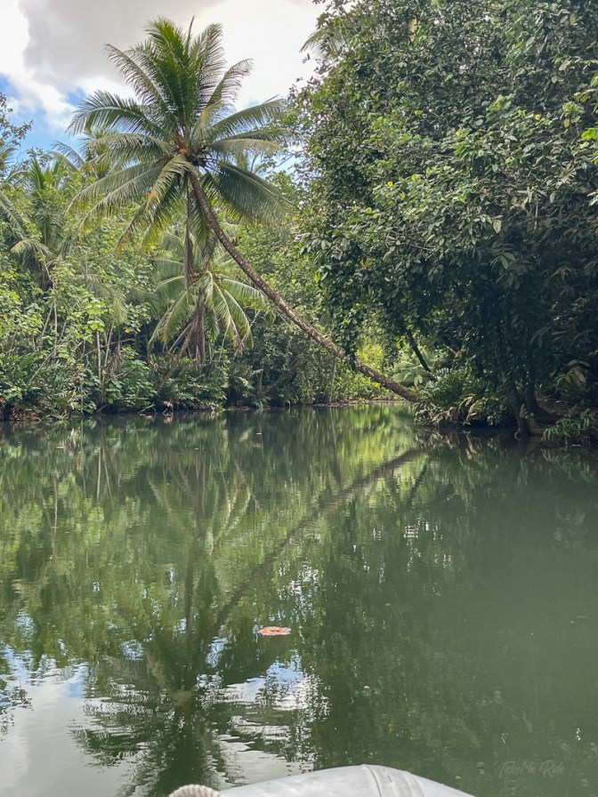 After leaving the farm, we explored the inlet as far as we could in our dinghy. Frank harkens back to his Louisiana days and always wants to see how far we can explore in our dinghy. Sadly, I’m afraid we sort of ruined the ambiance for the kayakers who were on an eco-tour. But we moved away as quietly and quickly as we could! And we saw some beautiful scenery.