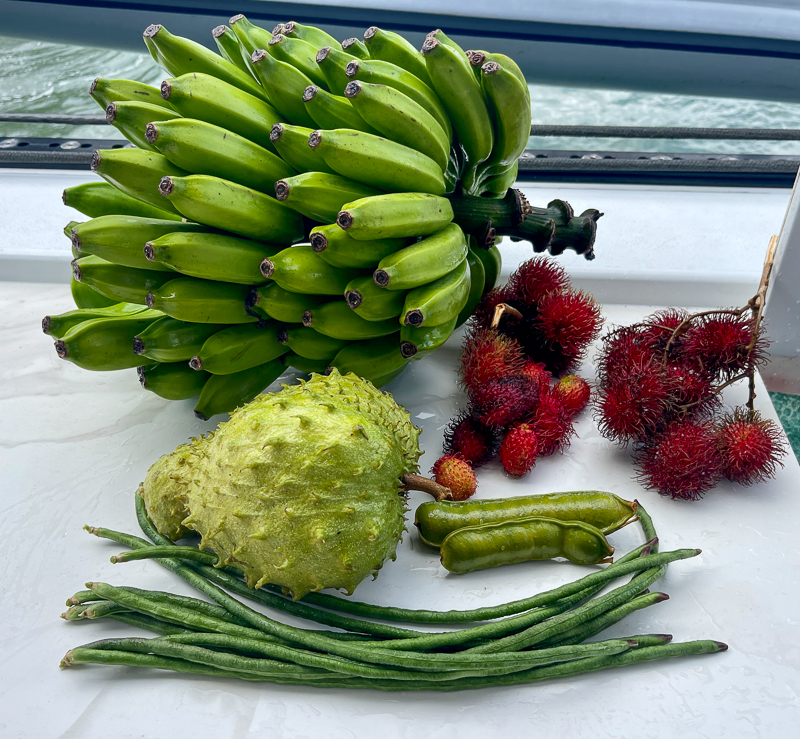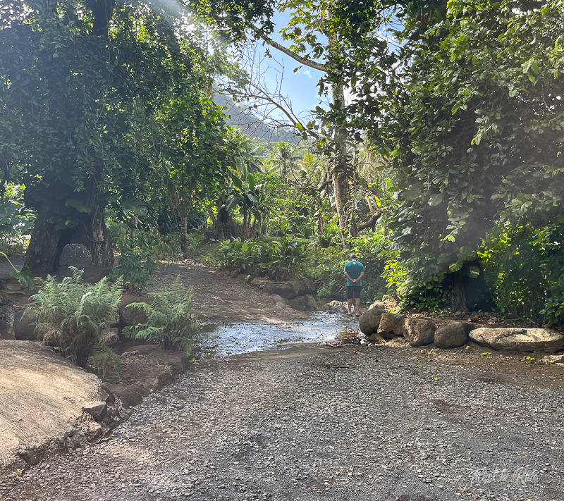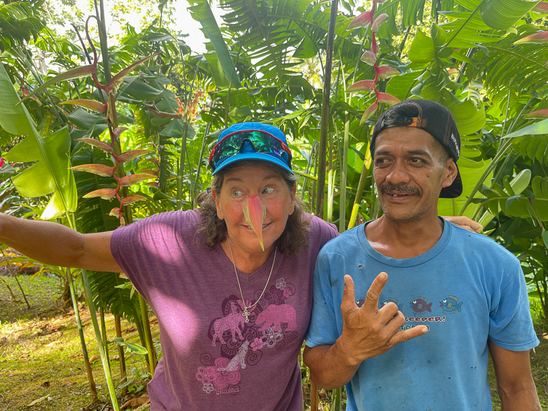Our first full day on Huahine, Amelia wasn’t feeling up to par, so Frank, Kevin and I left her to rest on TTR while we walked the street of the tiny village near where we anchored. The day was delightful, with gorgeous plants, a sweet little beach side snack spot and some unique garden work.