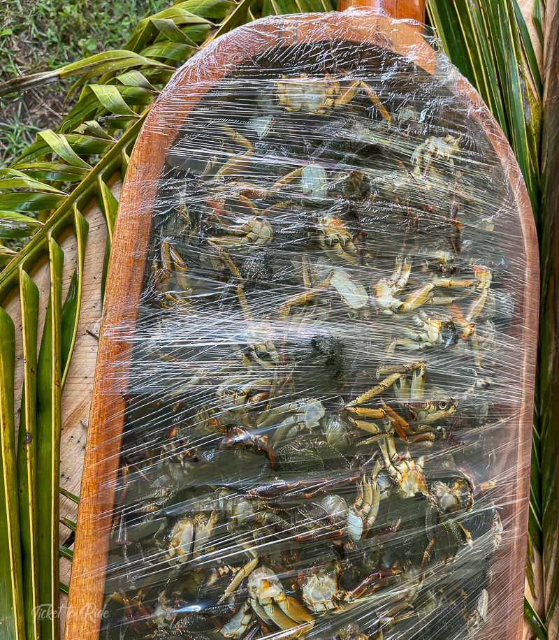 Anyone who wanted to eat was required to bring his own plate and cutlery but these had to be made of natural materials; coconut, wood, woven leaves, etc. We used cleaned out coconut shells and wooden chop sticks.