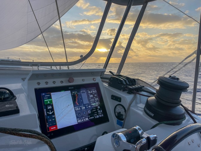 Actually, I am happy I didn’t know this was a tough passage. I would have been apprehensive and that might have made the passage more difficult.  We were never in any danger while on passage, but there were times when it was rather uncomfortable. Ticket to Ride is an incredibly stable boat and she could be pushed much harder than we push her when sailing with only two on board. Having complete confidence in our boat makes all passages easier.