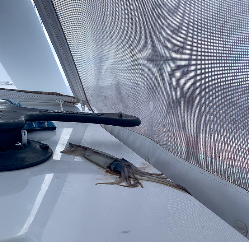 On one of those days, Frank and I were sitting at the helm and we smelled something rather unpleasant. After surreptitiously checking each other, we realized a visitor had been propelled into the helm station on a wave!