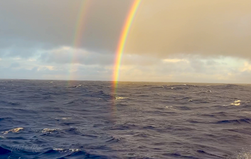 In addition to the waves and deep downwind angles, on Wednesday it began to rain. Since the wind was coming from the rear, the rain was also coming into the cockpit and everything was getting wet. This was one of those passages where even though we don’t have any leaks on TTR, the water and salt get everywhere!
