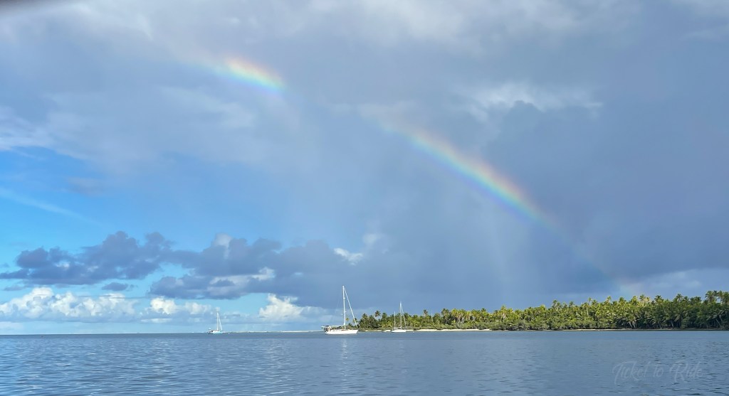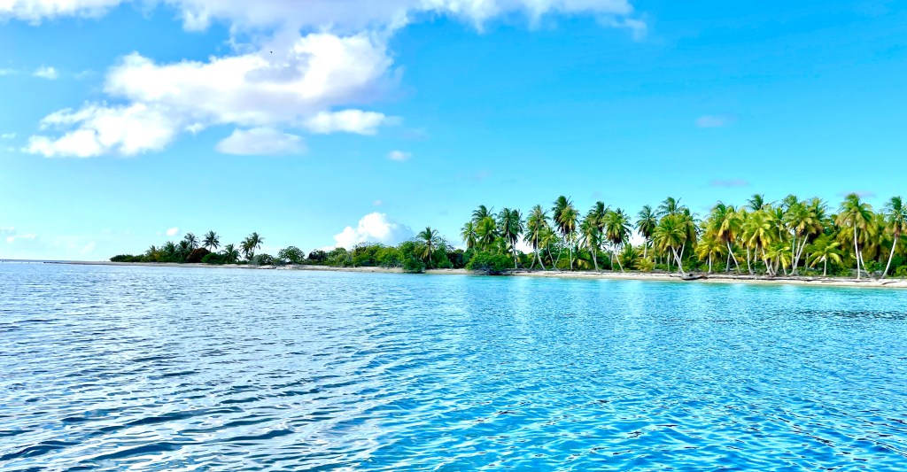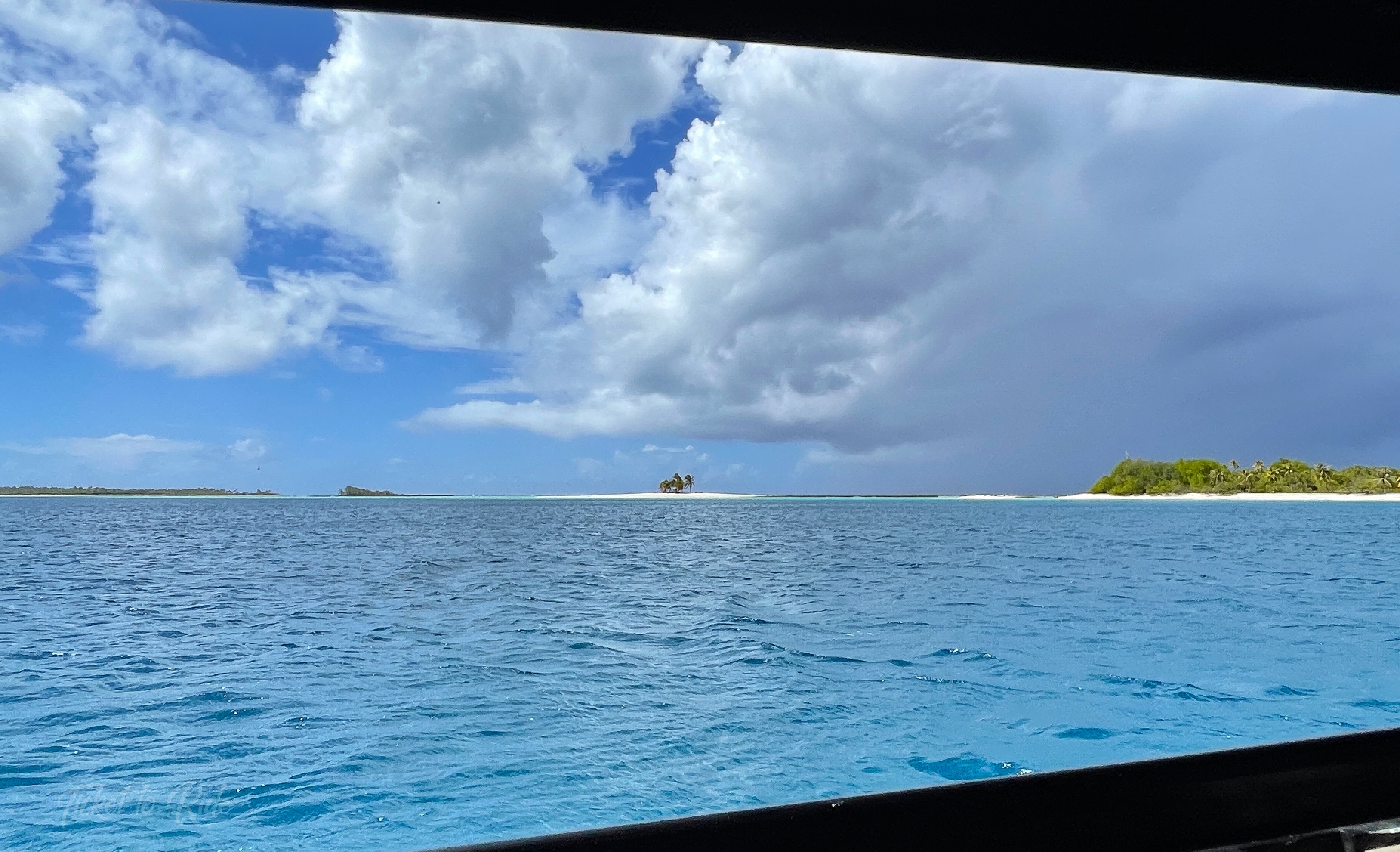 A view out my window at the False Pass, Toau. We have spent the last four months wandering from atoll to atoll. Others may, but we do not tire of these lovely water views.